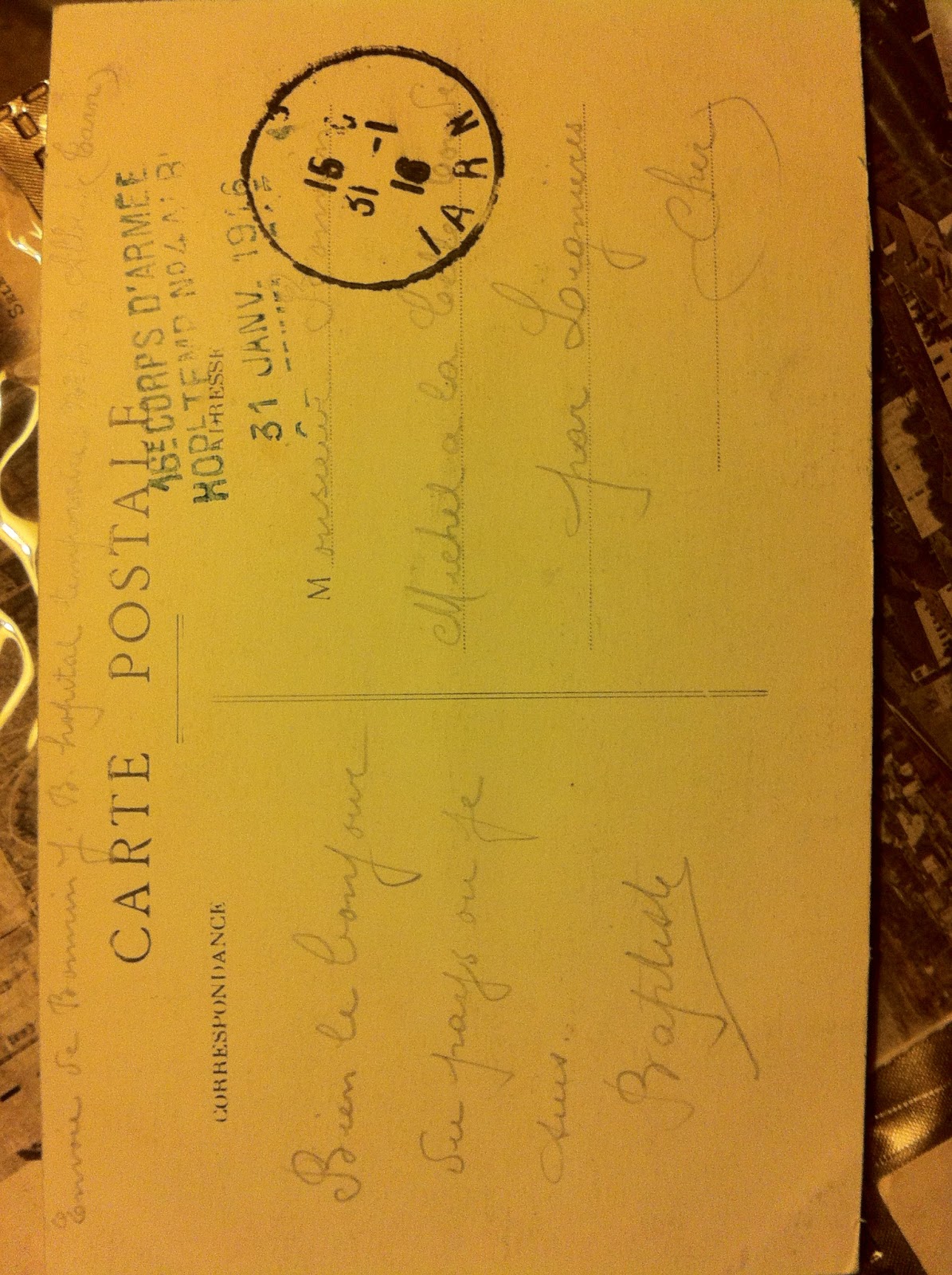 Jean-Baptiste écrit à ses parents, depuis un hôpital du Tarn où il a été hospitalisé (je ne sais pour quelle raison).