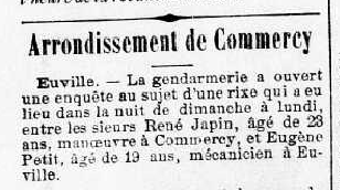 Le 3 août 1909 (à 20 ans), Eugène est condamné par le tribunal de St Mihiel à 16 francs d'amendes pour coups volontaires!