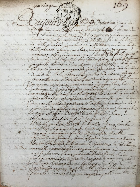 Ci-dessous l'acte de mariage de mes ancêtres avec la transcription.