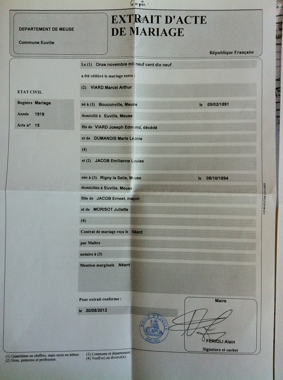 Je n'avais pas forcément un bon a priori sur la réponse, me souvenant des problèmes à obtenir des documents. En effet, je n'ai jamais pu obtenir les actes de naissance de mes grand-parents, et l'acte de mariage de mes arrières grand-parents mariés en 1919!
