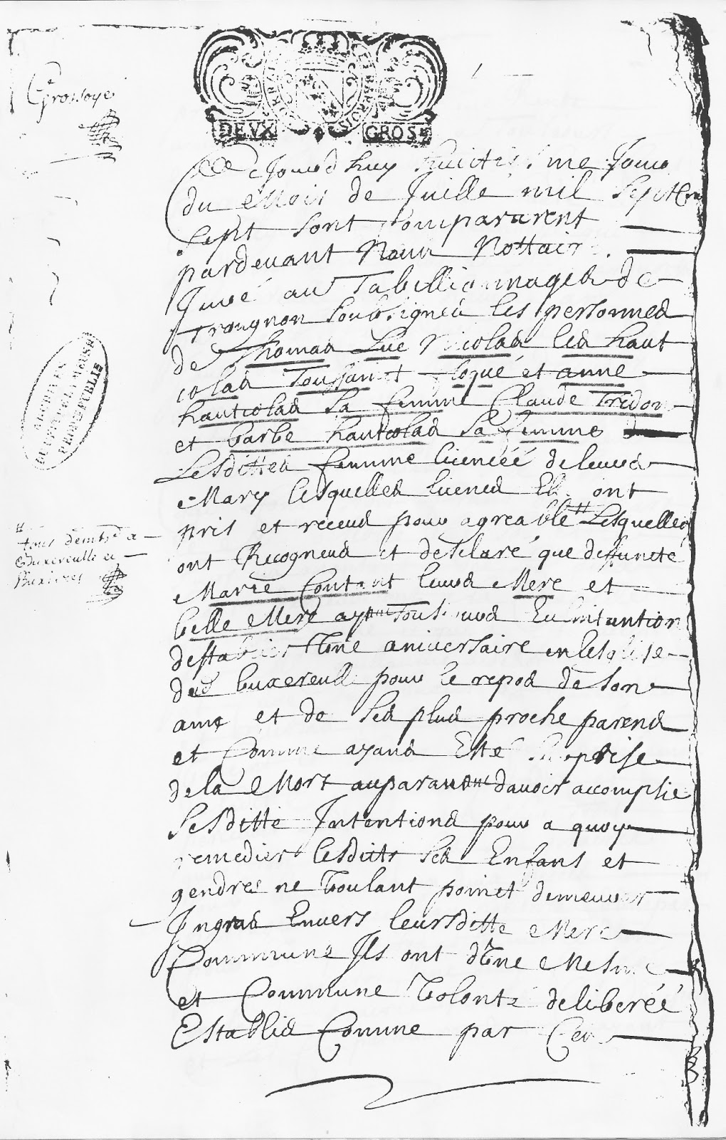 le 1er juillet 1842, passée cher Joseph Germain du même lieu
