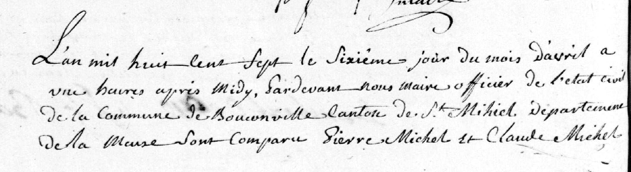 Il était né à Loupmont, commune voisine au pied des Côtes de Meuse, du mariage de Gérard Michel et de Christine Zambeau (orthographe imprécise...).