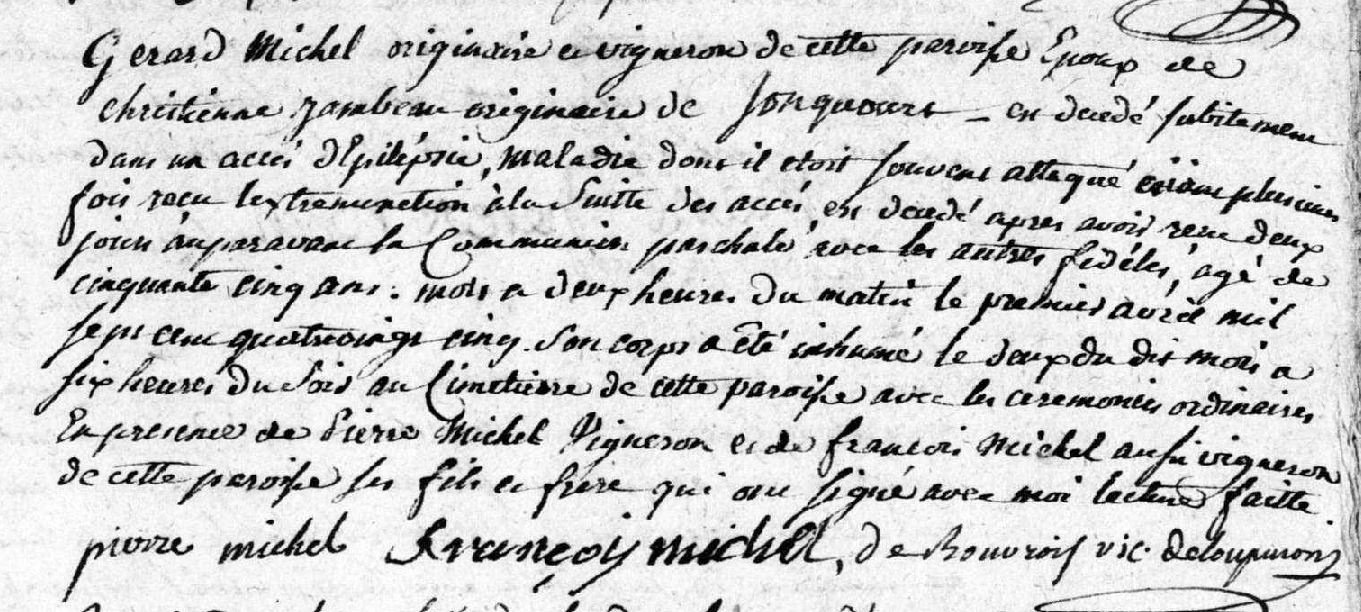 "Gerard Michel, originaire et vigneron de cette paroisse époux de