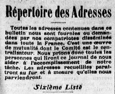 Y sont présentes également les adresses de ses beau-frères, dont Jean-Baptiste Bonnin, mort pour la France, et auquel je dédierai plusieurs articles.