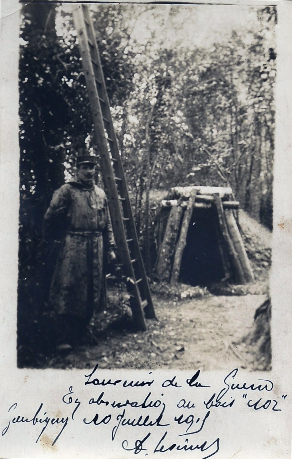 RépondreSupprimerEn faisant une recherche sur le Bois 102 je tombe sur votre photo d'Eugène Préhau à Guerbigny en milieu de page où il pose à côté d'une échelle qui ressemble bigrement à celle-ci (en milieu de page aussi) :