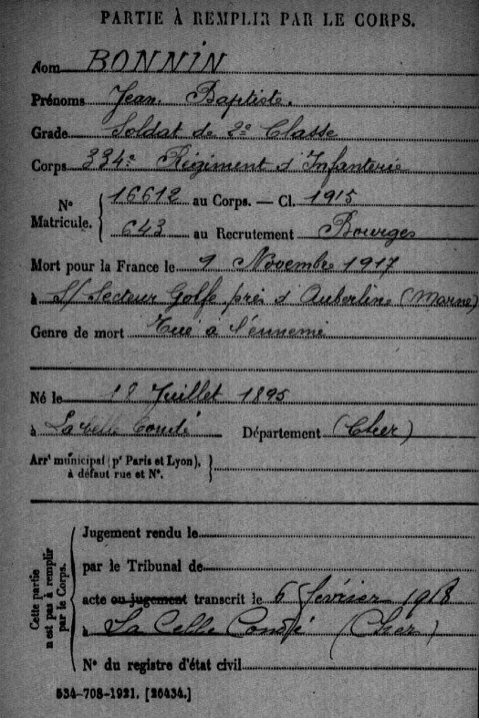 Je ne donnerai pas plus d'informations que j'en ai déjà donné lors de mon dernier article sur Baptiste en février dernier (Ma participation à la Grande Collecte). J'ai ainsi pu découvrir qu'il avait été enterré non pas dans son Berry natal mais dans une nécropole nationale.