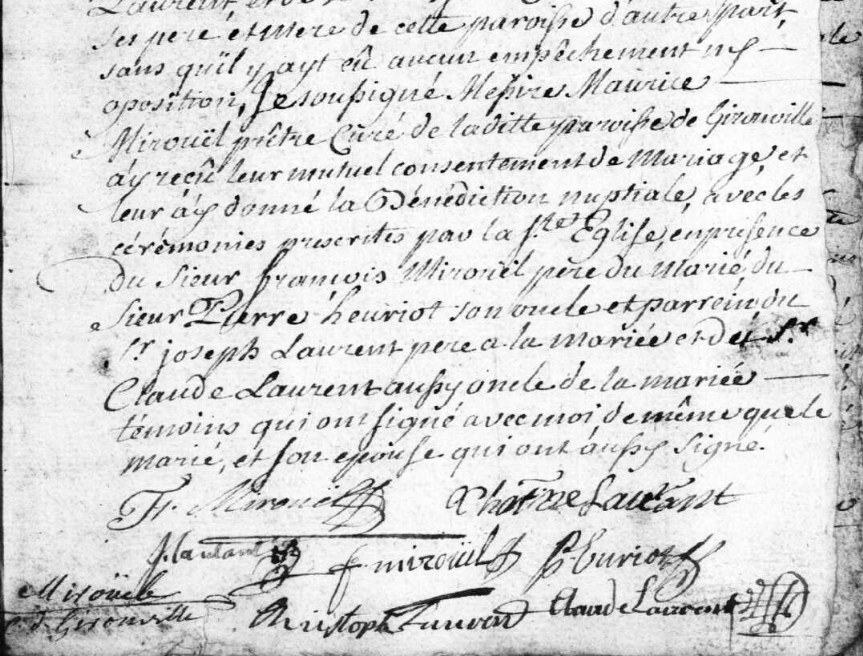 Mirouël, et de D'amoiselle Marianne Heuriot ses