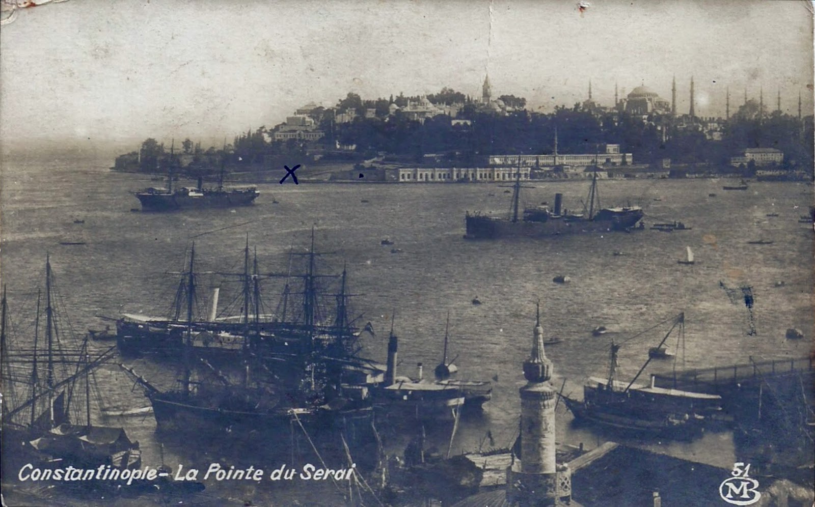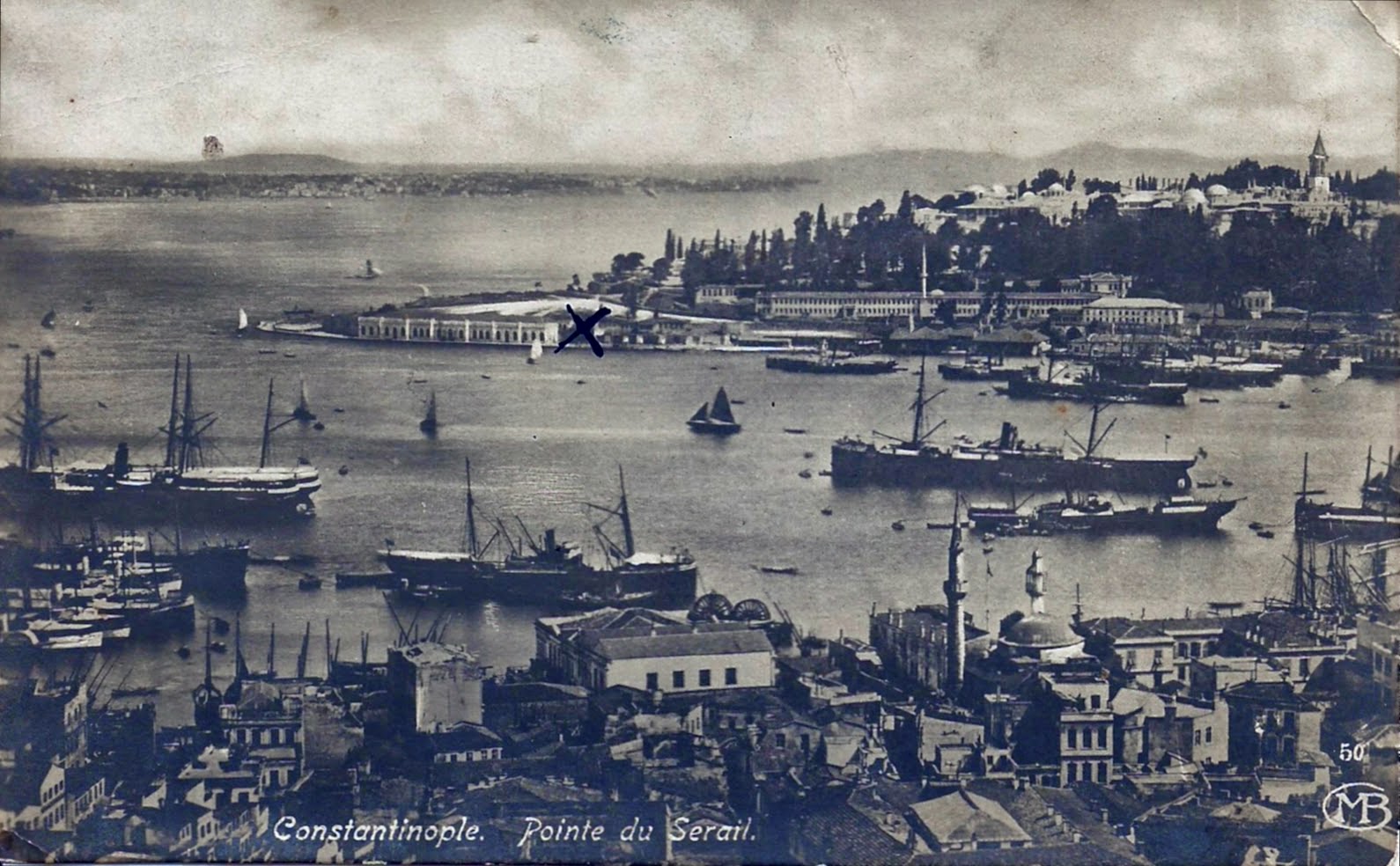 Autre vue de Constantinople en 1919 ; la croix représente le lieu de résidence de René Gaillet: