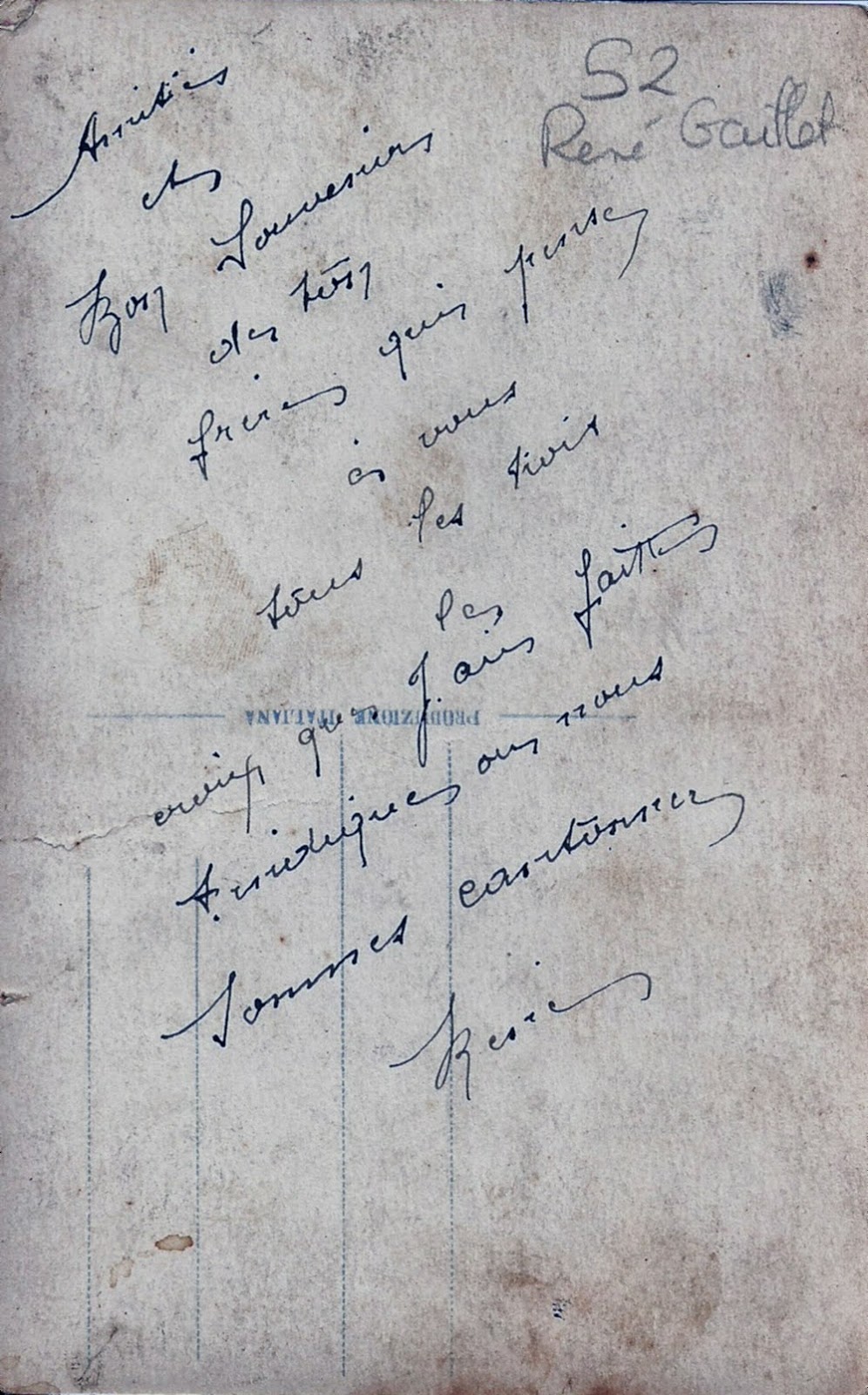 "Amitiés et bon souvenirs de ton frère qui pense à vous tous les trois, les croix que j'ai faites indiquent où nous sommes cantonnés, René"