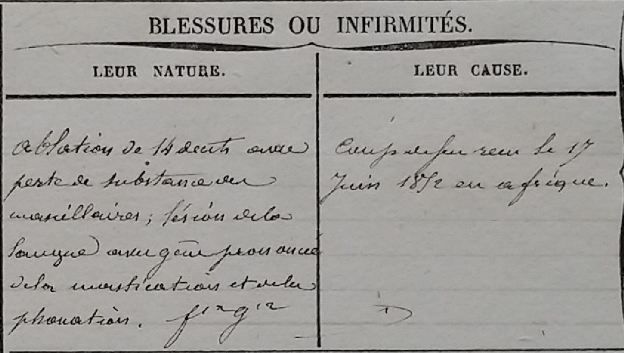 Cette blessure, cette infirmité ne l'a pas empêché de se marier en 1854, après son retour dans la Meuse, et d'avoir 4 enfants.