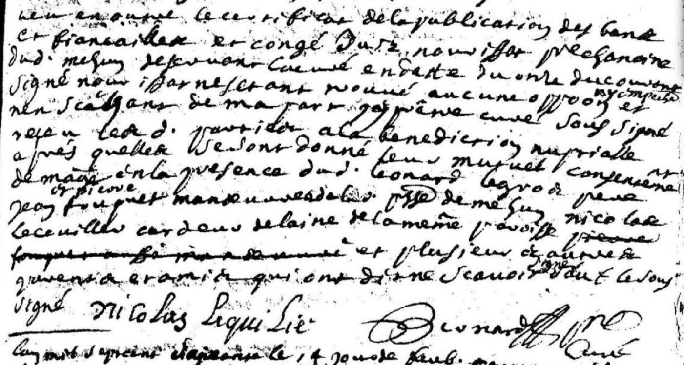 de mage (mariage) en la presence dud.(it) leonard legros pere
