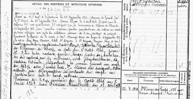 Ce dernier a fait le guerre de 14 et était domicilié à St-Pierre-des-Corps (37) en 1950.