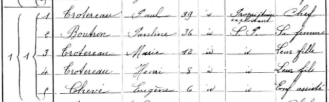 Pauline s'est mariée avec Paul Trotereau en 1880 et a eu 2 enfants: