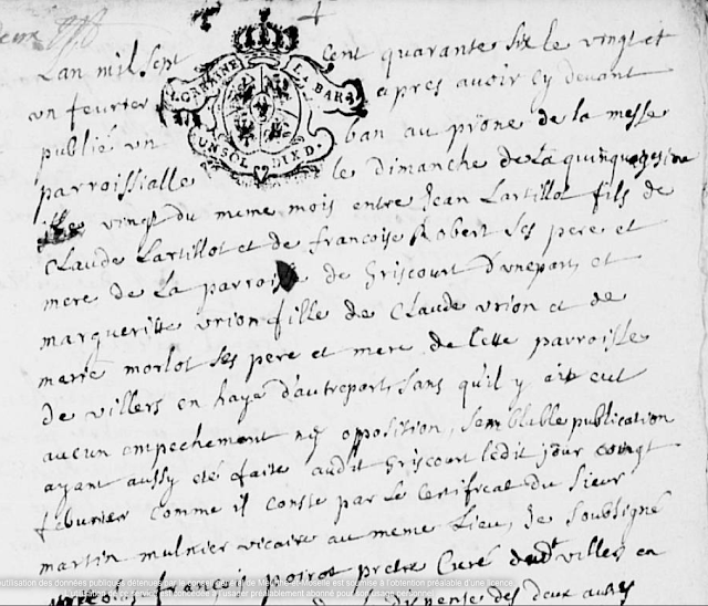 C'est à Villers que s'est mariée Marguerite Urion avec Jean Lartillot, du village de Griscourt tout proche, le 21 février 1746.