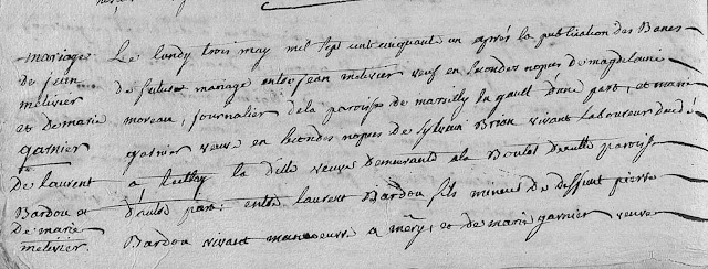 Ce n'est qu'en 1737 que Marie se remariera avec Silvain BRILLANT à Theillay (41), plus exactement le 29 janvier 1737.