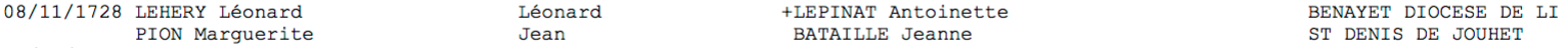 La première épouse de Léonard s'appellerait Marguerite PION donc, et Léonard serait bien originaire du Limousin, paroisse de Benayet.