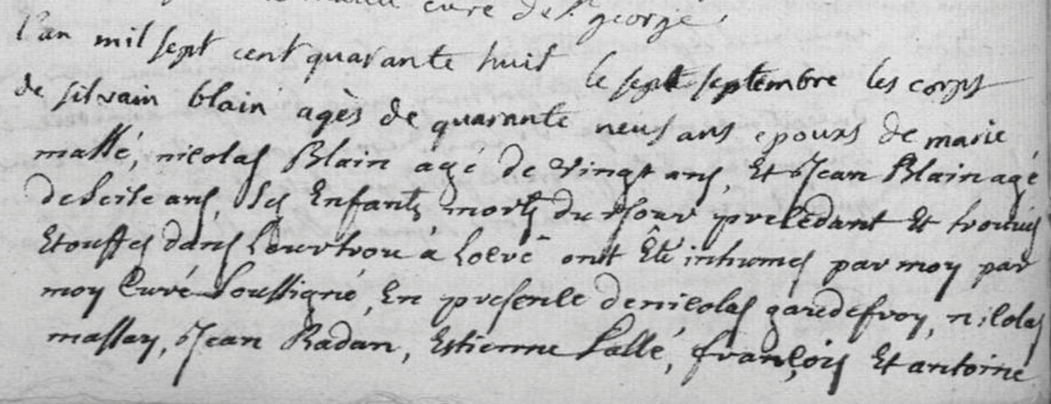 J'ai tout de même trouvé, via le site de généalogie "Généra Cher Indre", une indication sur le décès de son père, Sylvain, mentionné comme étant décédé le 7 septembre 1748 à Saint-Georges, et "ocrier" de profession.