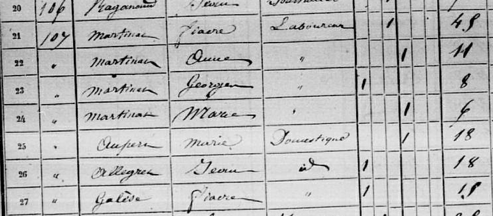 Sa fille, Marie Catherine, mon aïeule, née en 1799, a peu connu son père, et celui-ci ne sera même pas présent à son mariage en 1819, considéré comme absent.