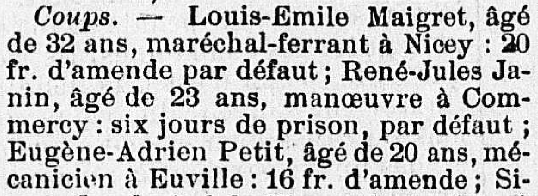 Le 3 août 1909 (à 20 ans), Eugène est condamné par le tribunal de St Mihiel à 16 francs d'amendes pour coups volontaires!