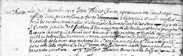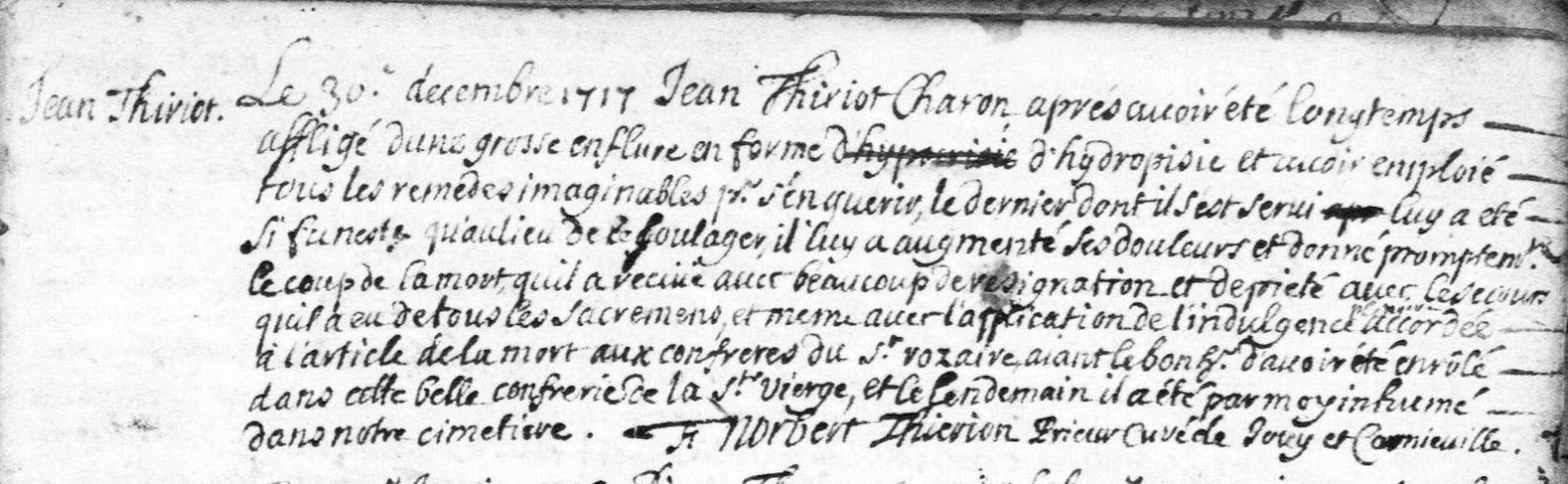 Le 30e decembre 1717 Jean Thiriot charon après avoir été longtemps