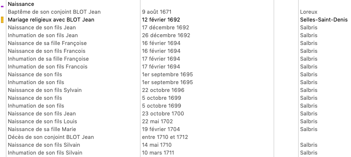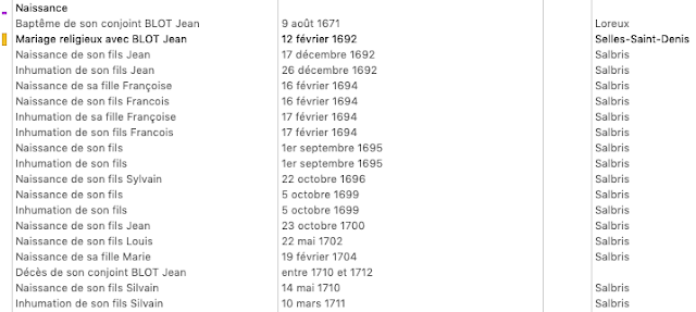 Le 12 février 1692, à Selles-Saint-Denis, Barbe épouse Jean BLOT (ou BELOT) avec qui elle aura...10 enfants!